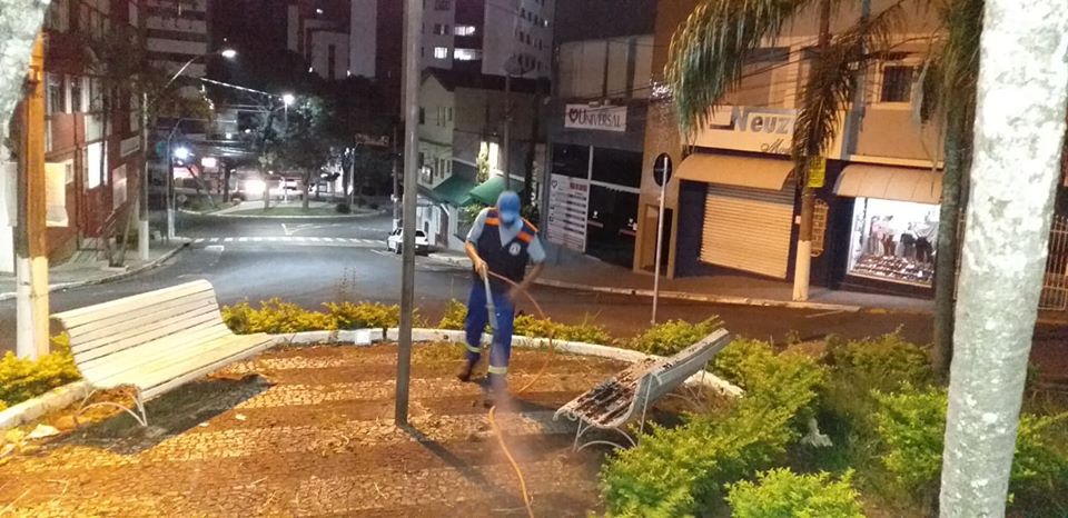 Equipes da Prefeitura, do SAAE Ambiental, Defesa Civil e voluntários continuam realizando operação de limpeza e desinfecção de ruas em toda a cidade. Ontem o trabalho seguiu até à noite sendo que o trabalho foi realizado nas Casas Populares, Francos, Bela Vista e em pontos da região central. O trabalho continua sendo realizado hoje e ao longo da semana.