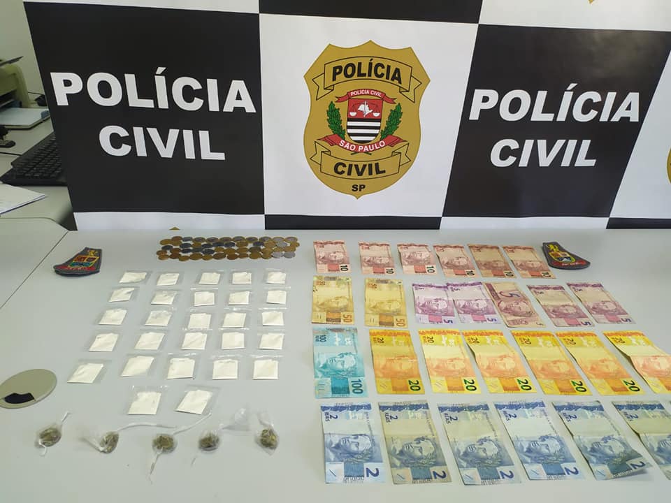 Na rua Domingos Lázari, nas Casas Populares, os policiais fizeram mais um flagrante de tráfico após denúncia anônima. Foram apreendidas 10 porções de cocaína. No mesmo bairro, na rua Revolução Constitucionalista, após uma abordagem, os policiais encontraram duas porções de cocaína e duas de maconha com um suspeito, que foi detido por tráfico.