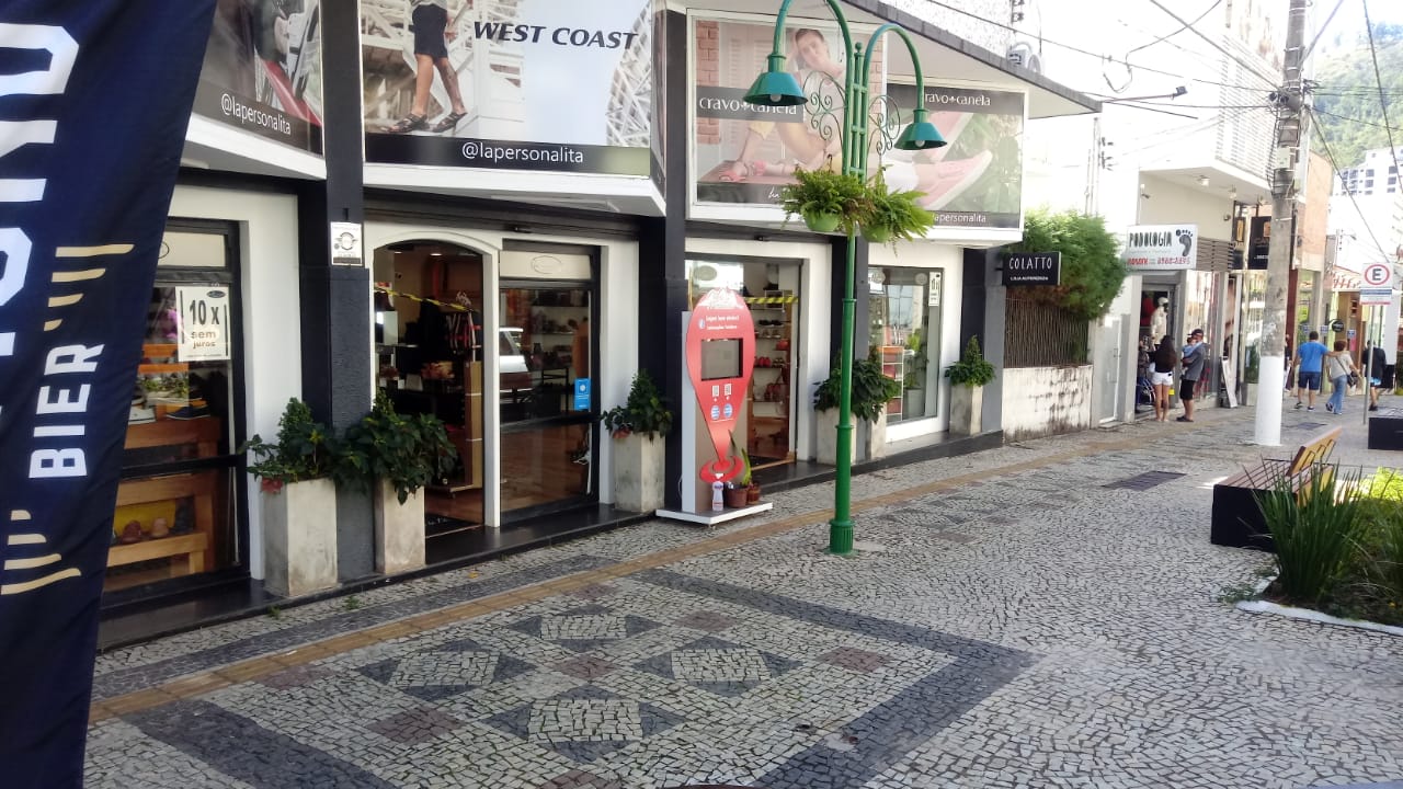 Rubens faz questão de mostrar que a oferta de álcool em gel e máscaras gratuita faz parte da ação dos comerciantes de Águas de Lindoia, que até um totem criou para a conscientização e o combate da pandemia Covid-19.