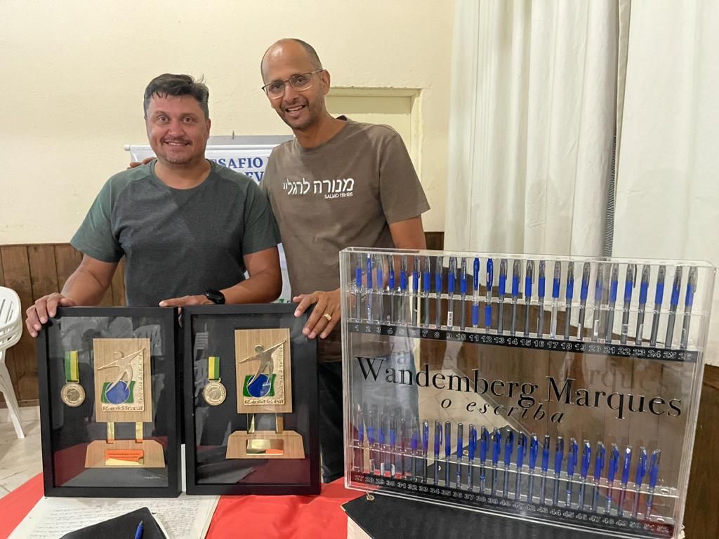 O desafiante Wandemberg Marques recebeu duas certificações do Rank Brasil como o “Mais Rápido a Transcrever a Bíblia” e “A Maior Quantidade de Canetas Utilizadas Em Ema Obra”, no caso, 52 unidades.