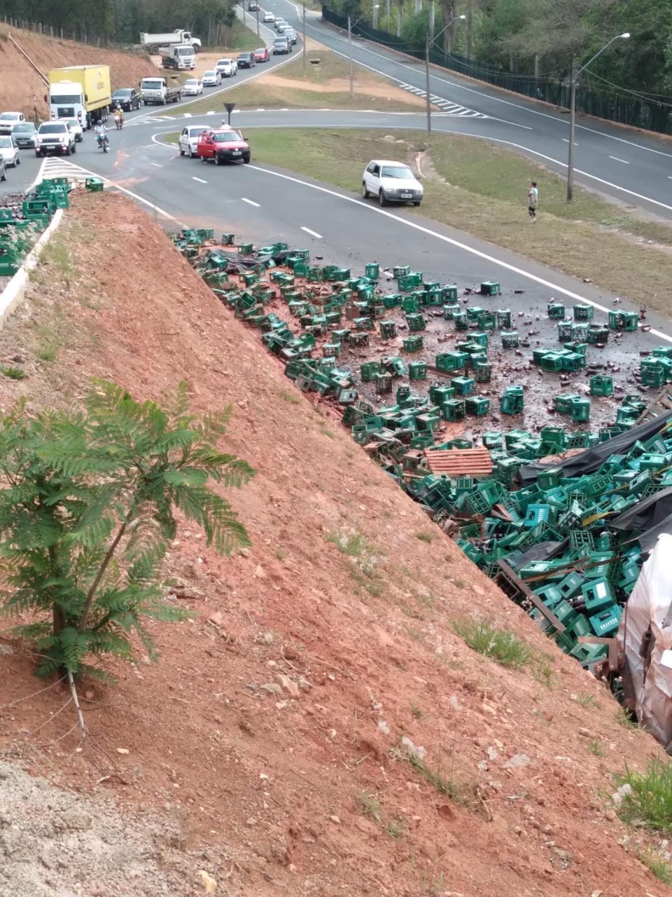 O acesso pela via foi interrompido até a noite, pois com o tombamento do caminhão, a carga se espalhou no sentido Monte Sião (MG) e a estrada ficou bloqueada.
