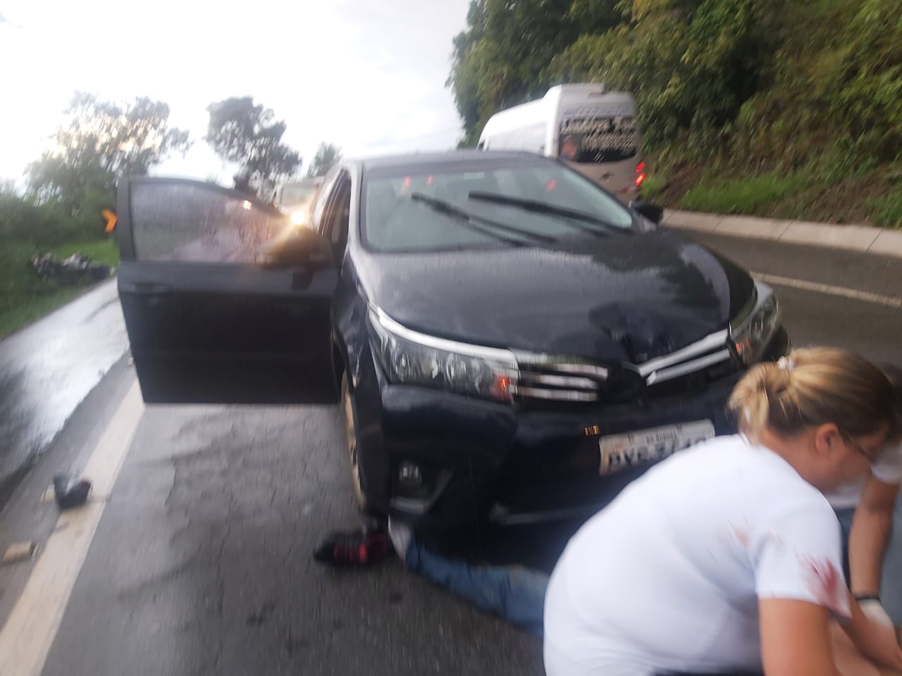 O carona, segundo apurado por esta reportagem, sofreu lesão na boca e fratura no tornozelo esquerdo. Já os ocupantes do Toyota Corola nada sofreram.