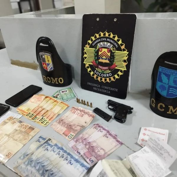 Ainda segundo o relato da GCM de Socorro, na revista pessoal, foi localizado tanto o dinheiro do roubo como o armamento, tendo 06 munições intactas utilizado no ato.