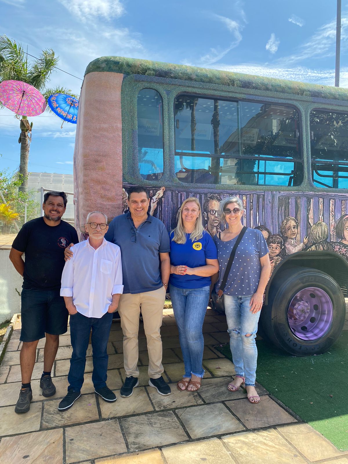 O presente mais charmoso e significativo que Monte Sião recebeu neste aniversário 174 anos é a nova roupagem em tricô do ônibus do Receptivo Turístico em homenagem ao grande artista da cidade, José Lindberg Gottardello, o Berg.