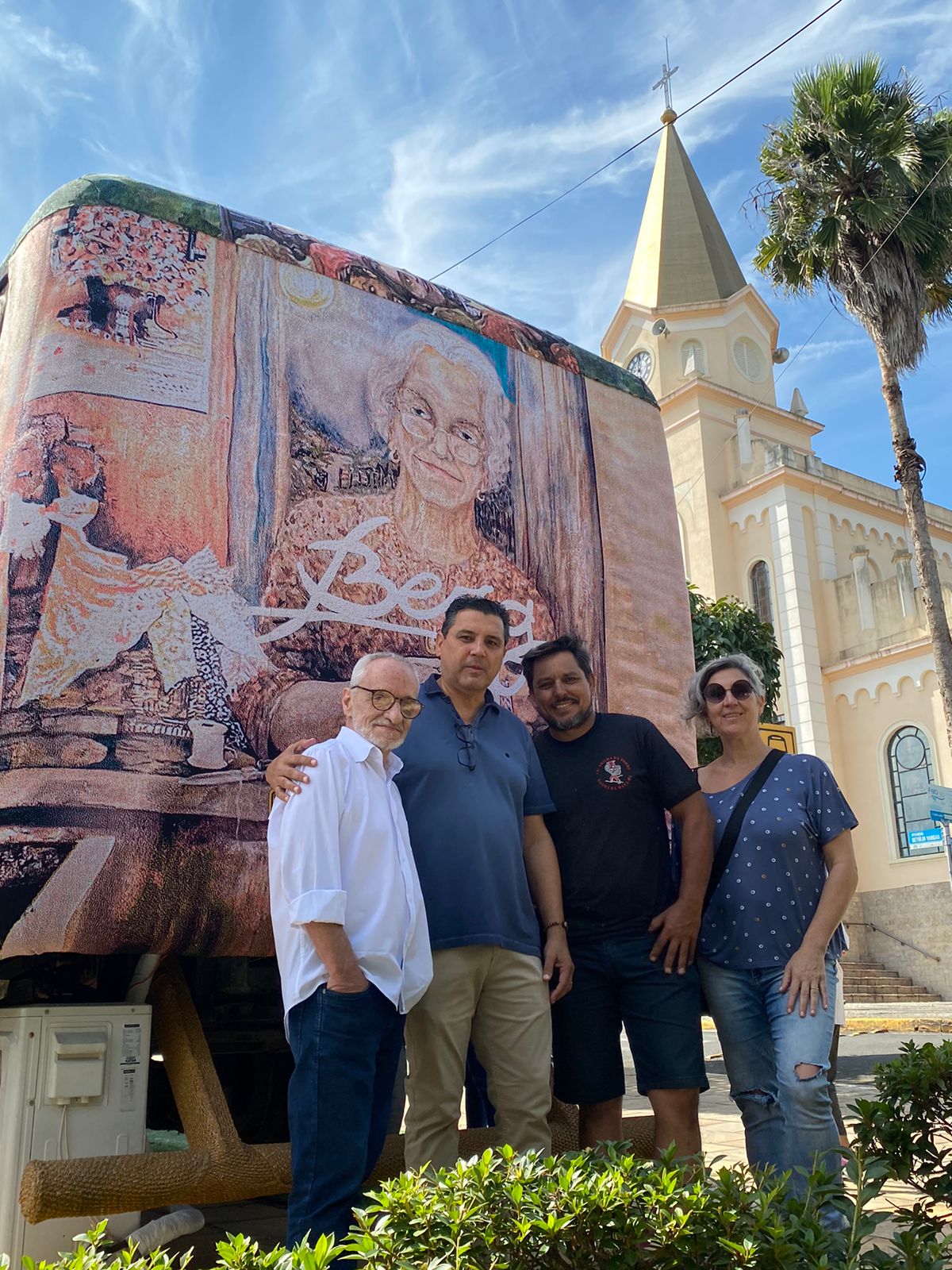 O presente mais charmoso e significativo que Monte Sião recebeu neste aniversário 174 anos é a nova roupagem em tricô do ônibus do Receptivo Turístico em homenagem ao grande artista da cidade, José Lindberg Gottardello, o Berg.