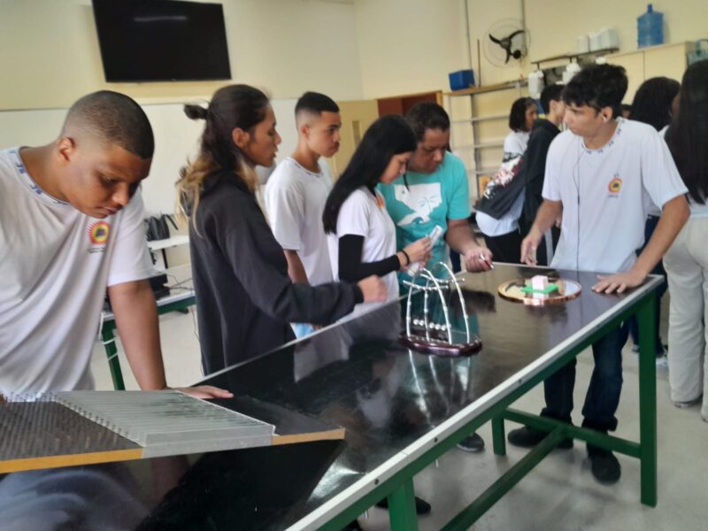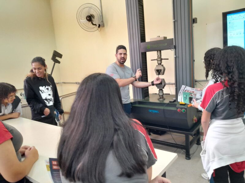 O grupo de alunos da PEI Dr. Jovino Silveira também pode conhecer as dependências da unidade e a infraestrutura acadêmica, como laboratórios e espaços de convivência.