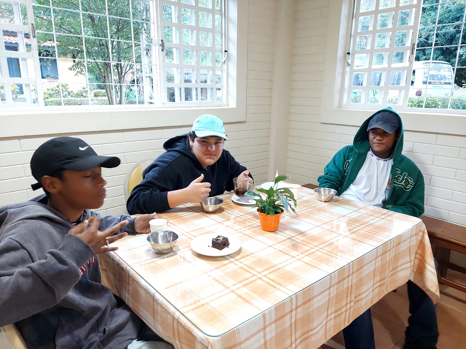 Durante a visita foram desenvolvidas dinâmicas, prática de Raja Yoga, visitação as instalações da Vila Serena e também oferecido um lanche com alimentos naturais: bolo vegano, suco de uva, pipoca. O lanche contou com a presença de Luciana Ferraz, coordenadora da Brahma Kumais.