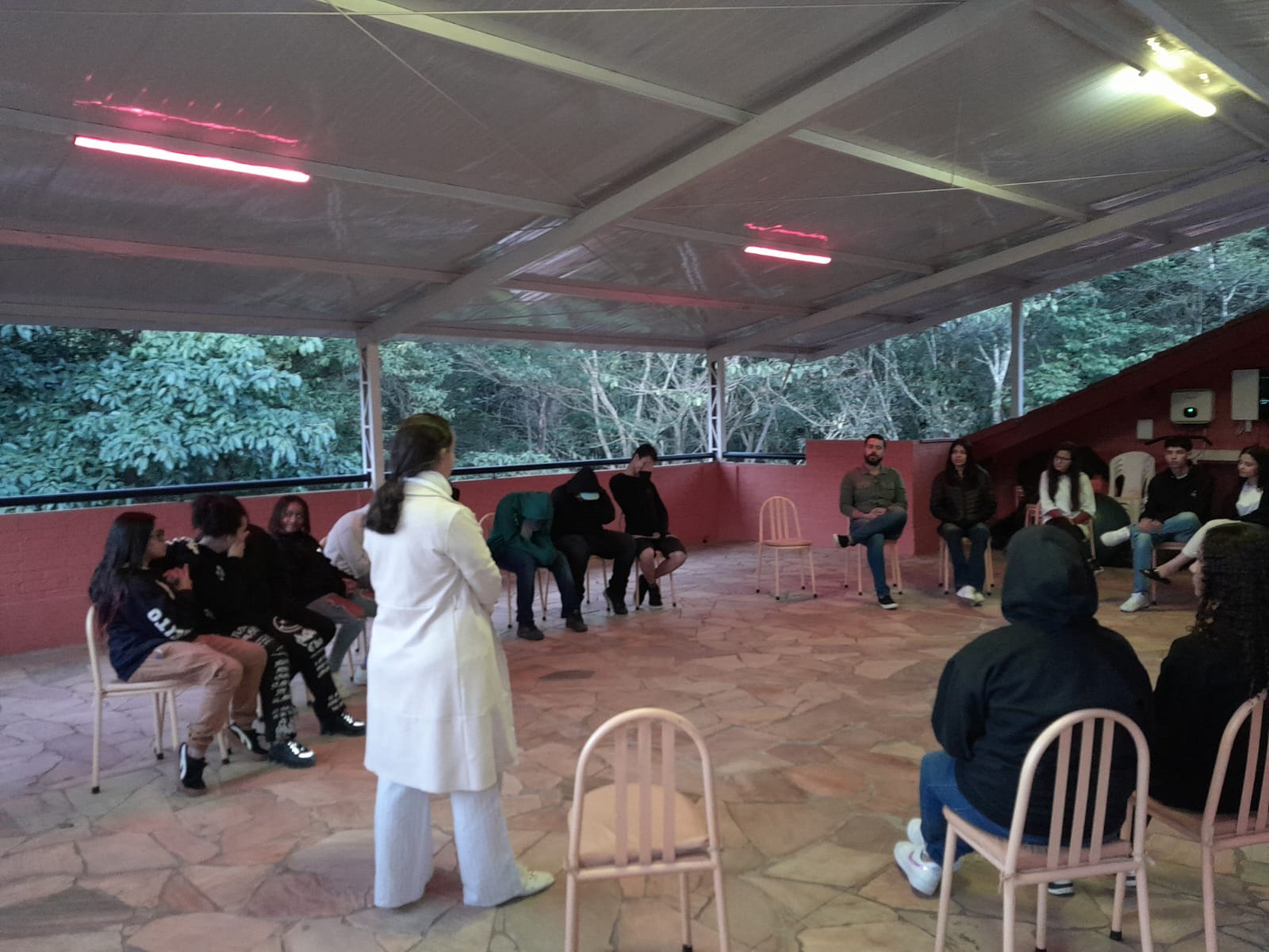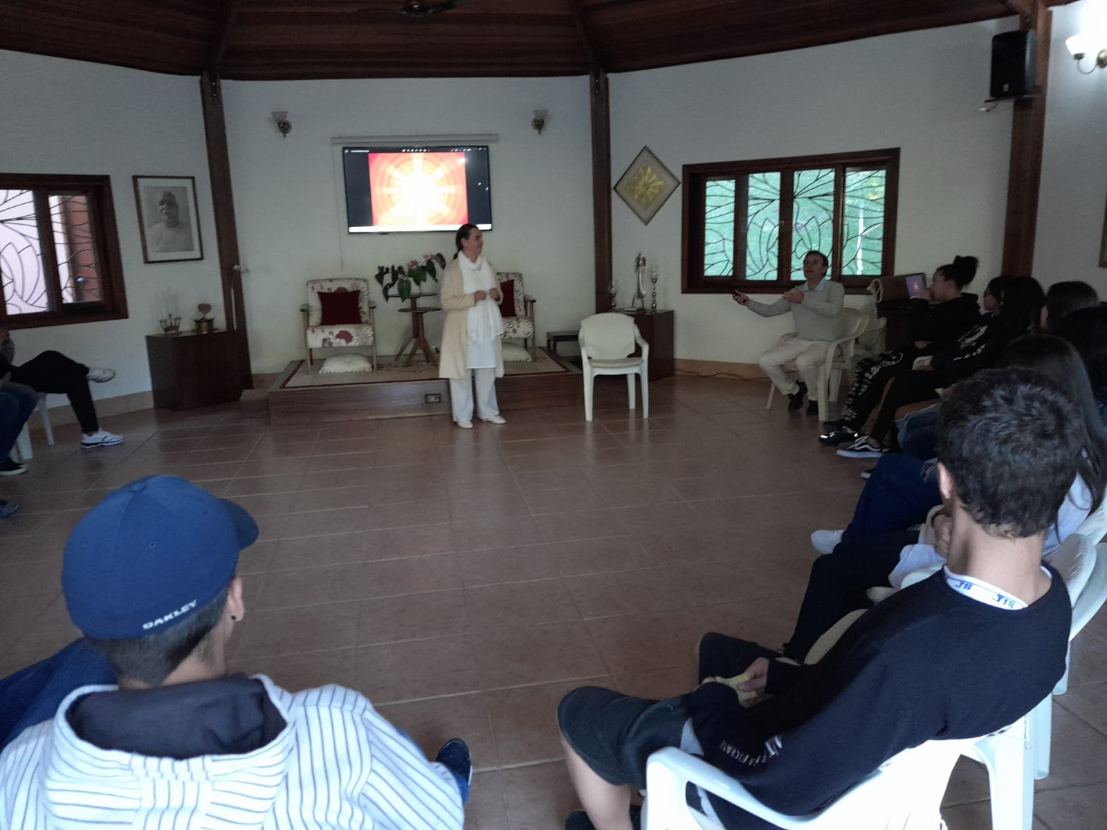 O grupo foi recebido na Vila Serena por Kátia Roel, que ministrou uma conversa sobre raja yoga e Francis Coviello, que falou sobre sustentabilidade e os projetos aplicados na propriedade sede da Brahma Kumaris. Os alunos foram orientados para a importância da meditação e da busca pela paz.
