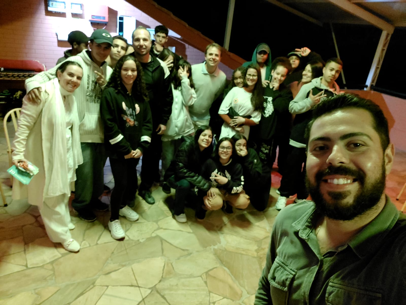 Um grupo de alunos da PEI Dr. Jovino Silveira esteve no último dia 18 o sítio Vila Serena, sede da Brahma Kumaris, em Serra Negra. Os alunos integram a Eletiva Corpo e Mente ministrada pelos professores Renato Almeida, Gustavo Ruiz e Eliane Prado. O transporte foi oferecido pela Prefeitura de Serra Negra.