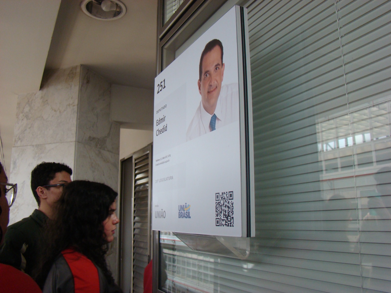 Hugo Berti Neto proporcionou aos alunos uma visita às dependências destinadas aos deputados, onde os educandos puderam ter uma visão dos espaços reservados às reuniões, discussões e formulações de propostas de leis ou de estudo para as votações.