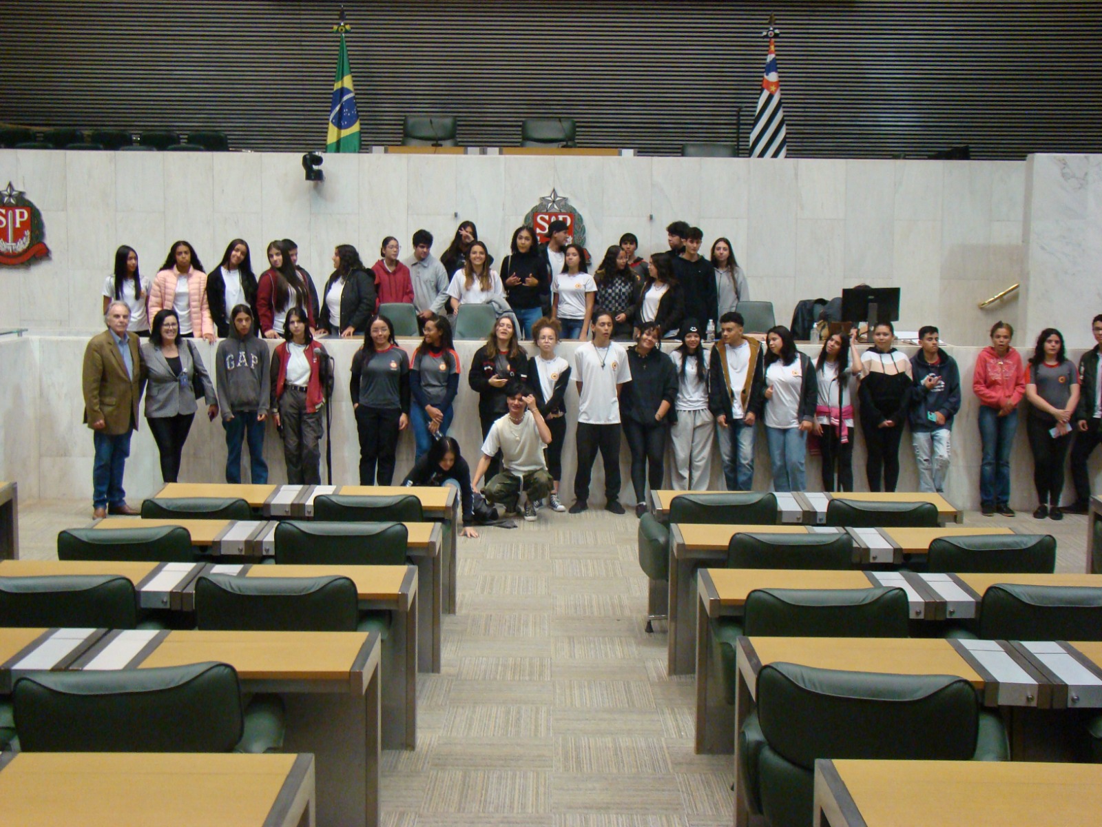 Além da contextualização sobre o papel e importância do Poder Legislativo Estadual, os alunos visitaram o plenário da Alesp e simularam os trâmites de um processo na Casa de Leis, ocupando a Tribuna e a cadeira da presidência do Legislativo. Desta forma, puderam vivenciar o processo de debate e votação de projetos de lei.