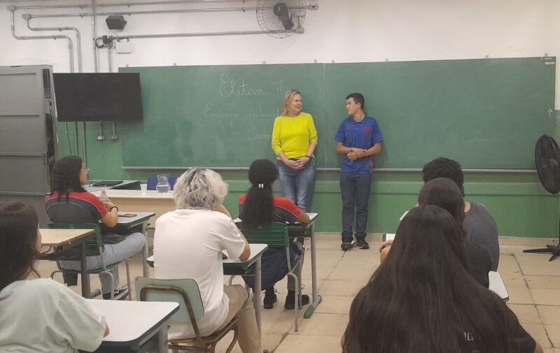 N terça-feira, dia 14, a agente de desenvolvimento da Facesp, Kelly Simão, visitou a EE Dr. Jovino Silveira, quando conversou com alunos do Ensino Médio sobre o Programa de Estágio que a escola aderiu junto ao Instituto Talentos, um dos parceiros da Facesp.
