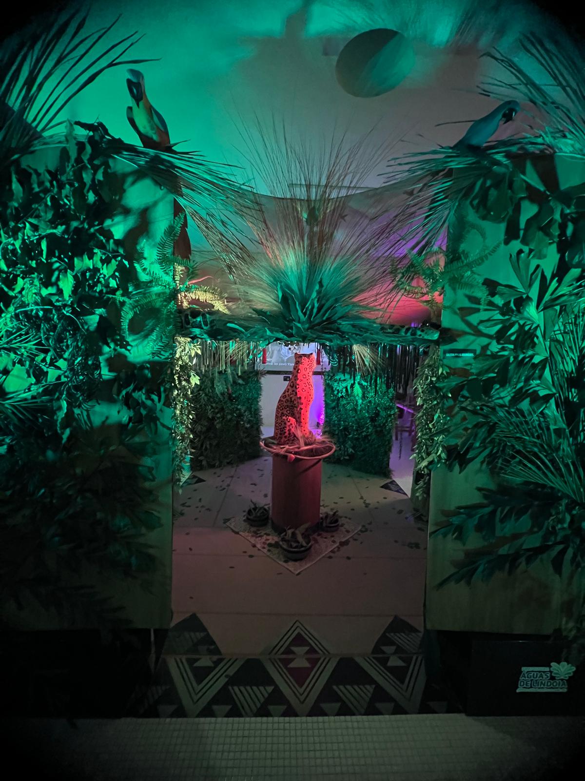 “A onça representa a rainha da floresta e ela está sentada sobre um tronco de uma madeira que veio da Amazônia, fruto de uma apreensão ilegal feita pelo Ibama e eu mostro nesse espaço, através de uma cenografia a importância das nossas atitudes e hábitos”, explica Fábio Garcia.