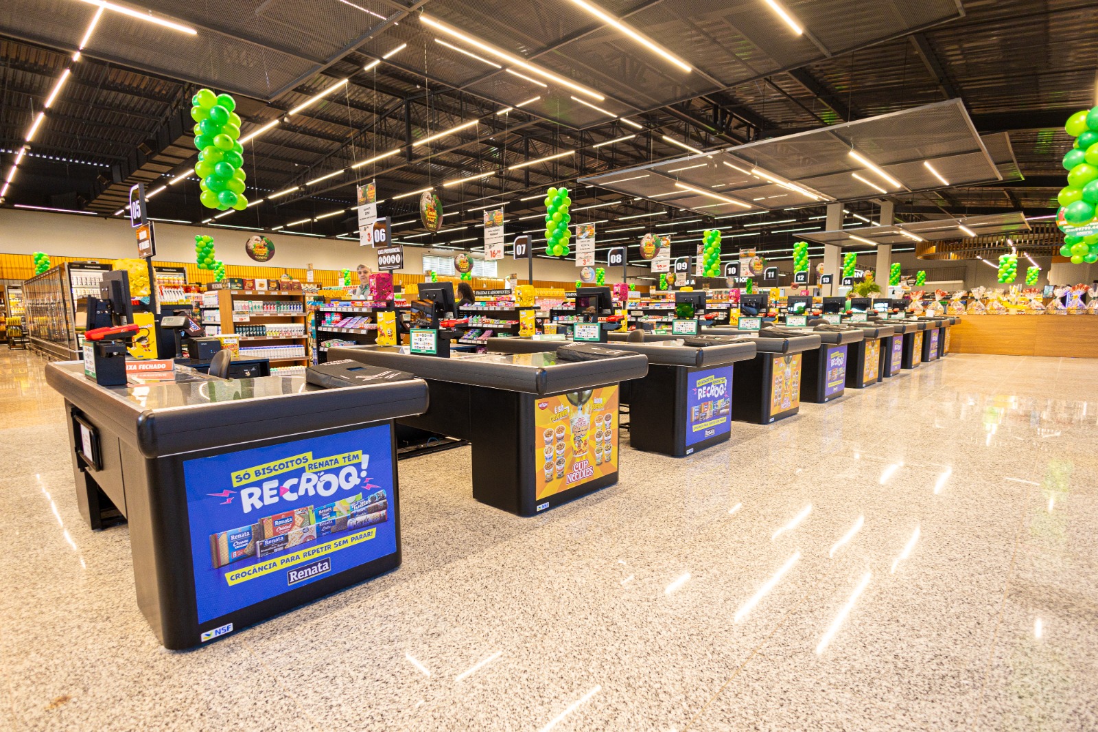 Entre as novidades, a loja dispõe de 14 checkouts tradicionais e 2 self-checkouts, proporcionando mais agilidade no atendimento. Outro diferencial é o uso de energia limpa, adquirida no Mercado Livre, reforçando o compromisso da Rede Rofatto com a sustentabilidade.