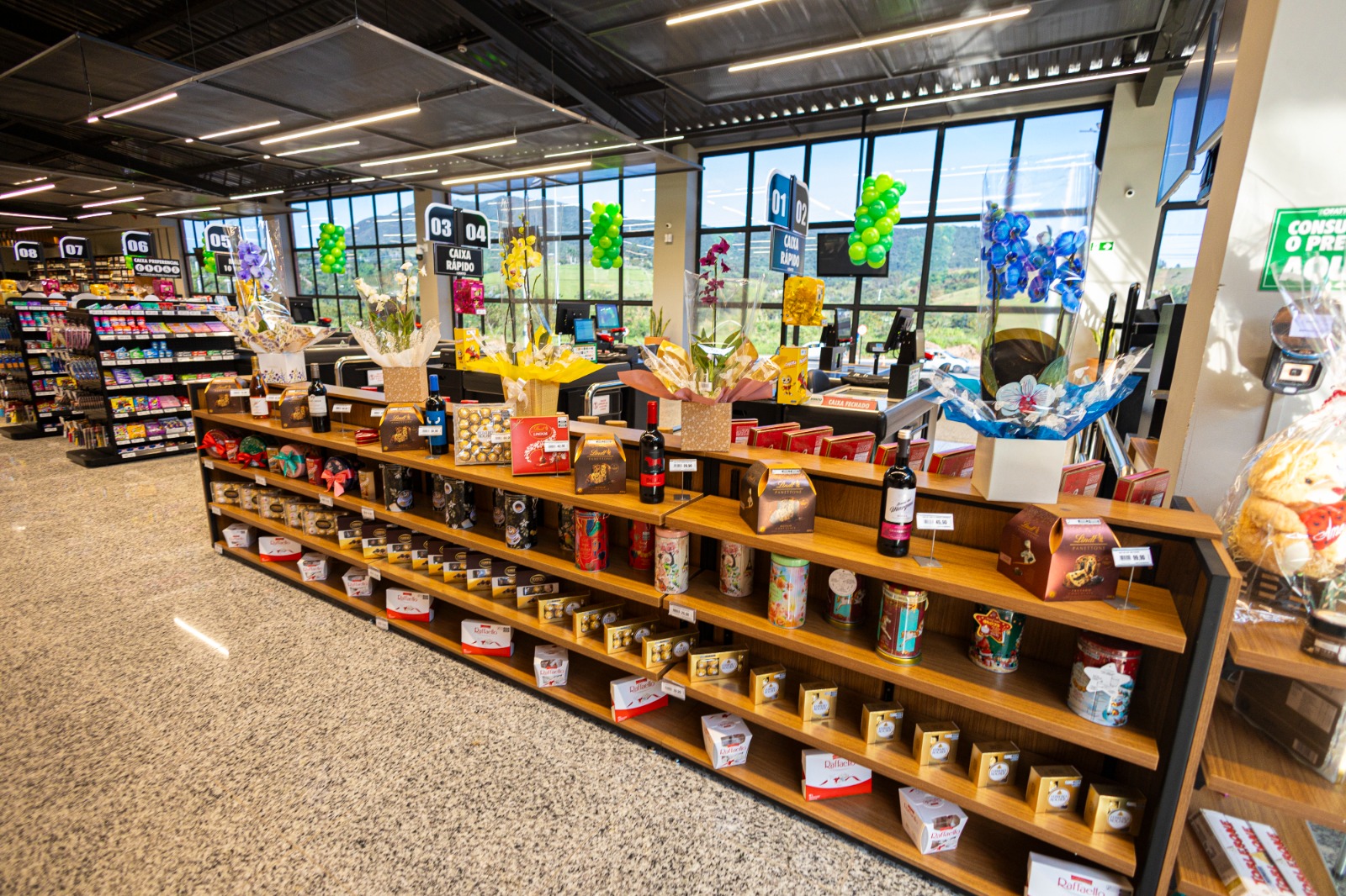 Os clientes poderão desfrutar de destaques como a floricultura, que promete encantar com sua diversidade de flores, uma adega completa, perfeita para os amantes de vinhos e bebidas especiais, e uma aconchegante cafeteria, ideal para momentos de pausa durante as compras.