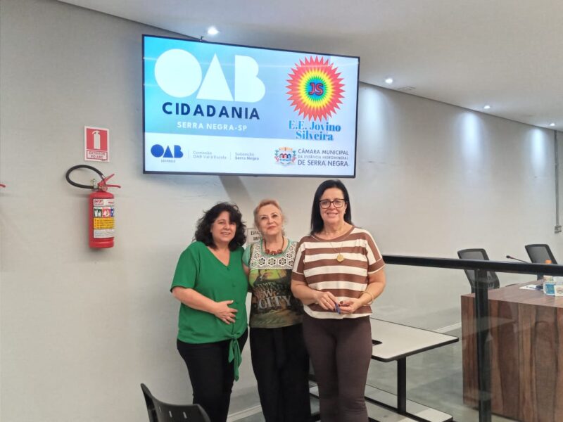 A parceria do PEI Dr. Jovino Silveira com a Comissão OAB Vai à Escola, da OAB de Serra Negra se dá através das ações “OAB Cidadania”, que tem por objetivo orientar os alunos sobre cidadania e a organização dos poderes, promovendo palestras e visitas a instituições públicas. As atividades, que incluem o envolvimento da diretoria da OAB e parceiros como a prefeitura, Câmara Municipal, Poder Judiciário e as escolas, visam aproximar os estudantes dos conceitos de formação cívica e política.